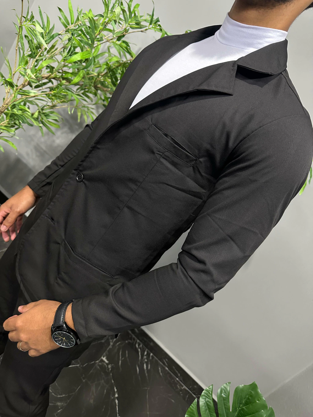 Com sua modelagem slim, este blazer oferece um ajuste moderno e refinado, perfeito para diversas ocasiões.
