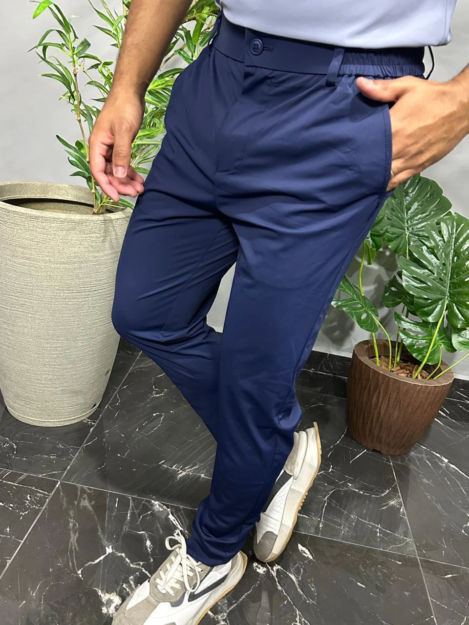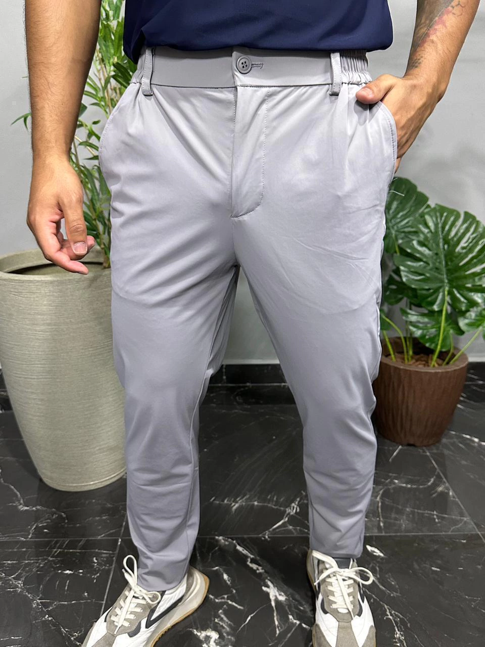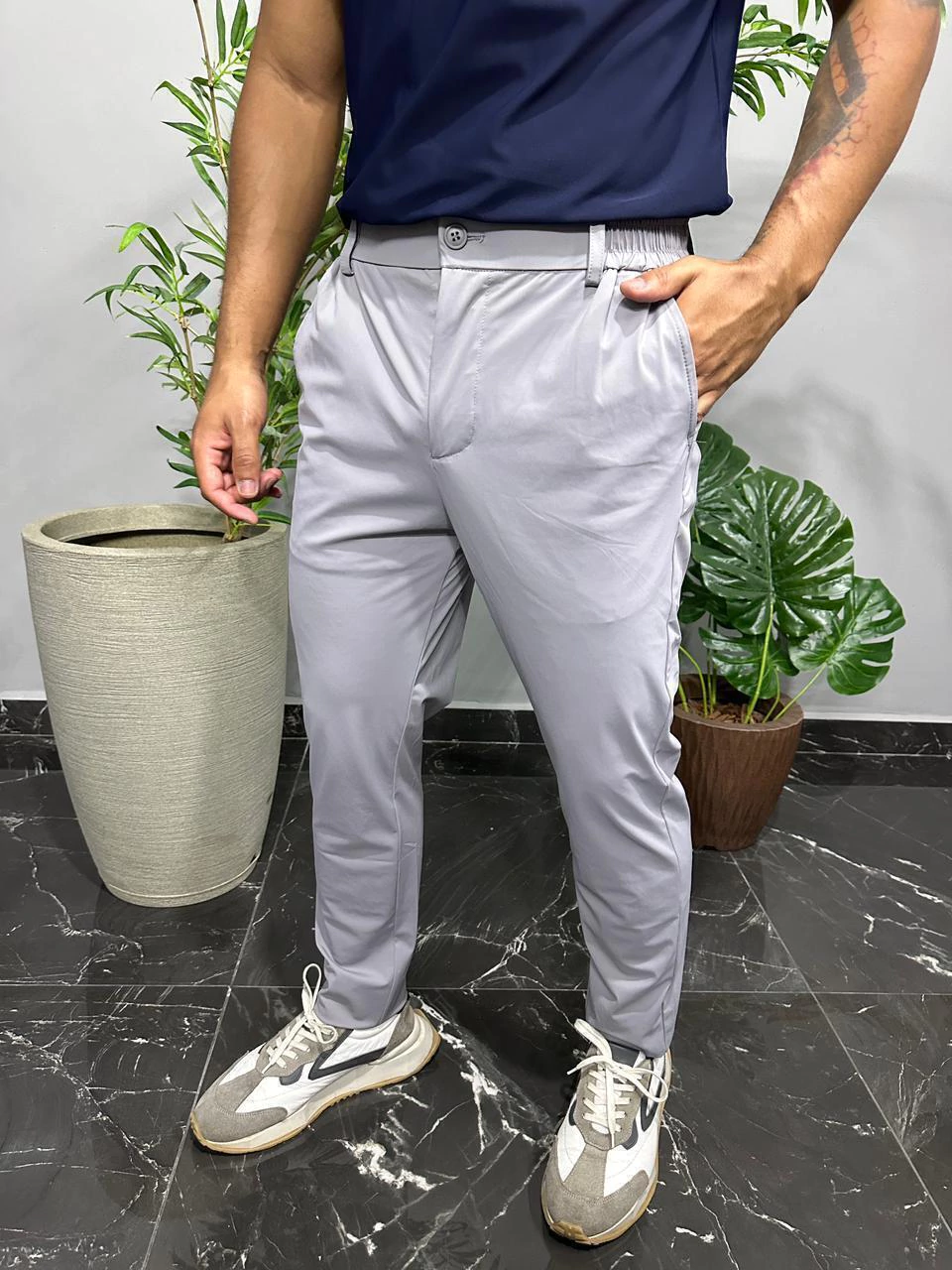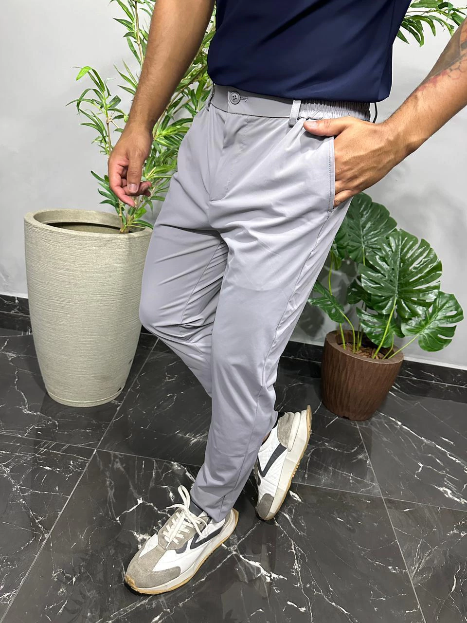 A Calça Masculina de Poliamida com Corte Alfaiataria une o melhor do conforto esportivo com a elegância clássica. Confeccionada em tecido leve, macio e de secagem rápida, ela proporciona mobilidade sem abrir mão do estilo refinado. Ideal para quem deseja um look versátil que transita do trabalho a momentos casuais, com praticidade e sofisticação.