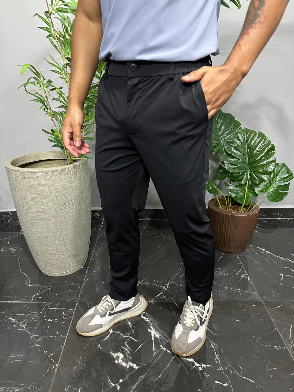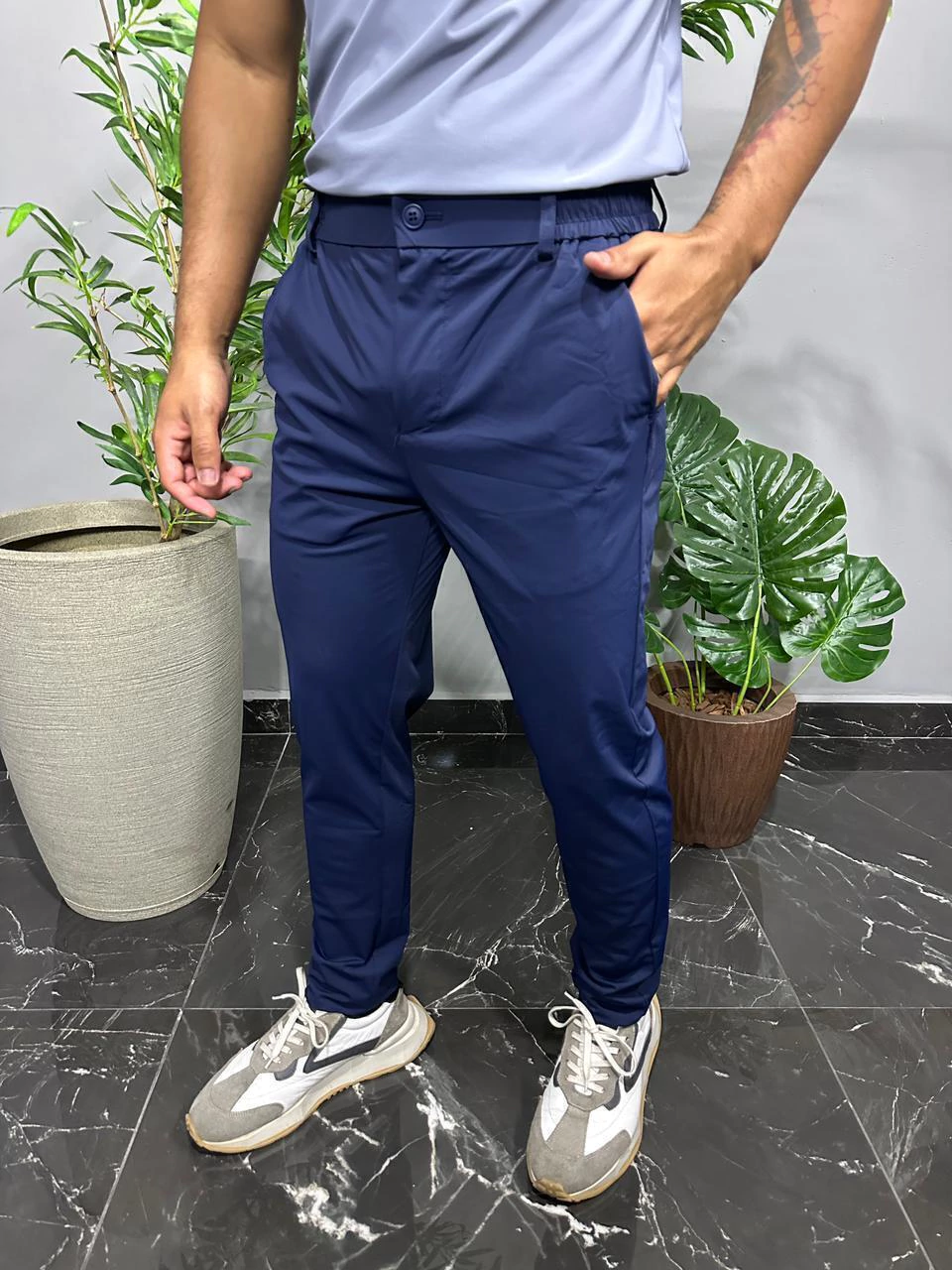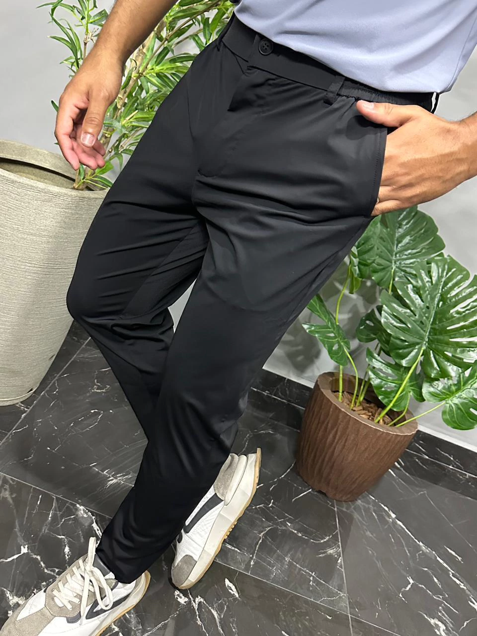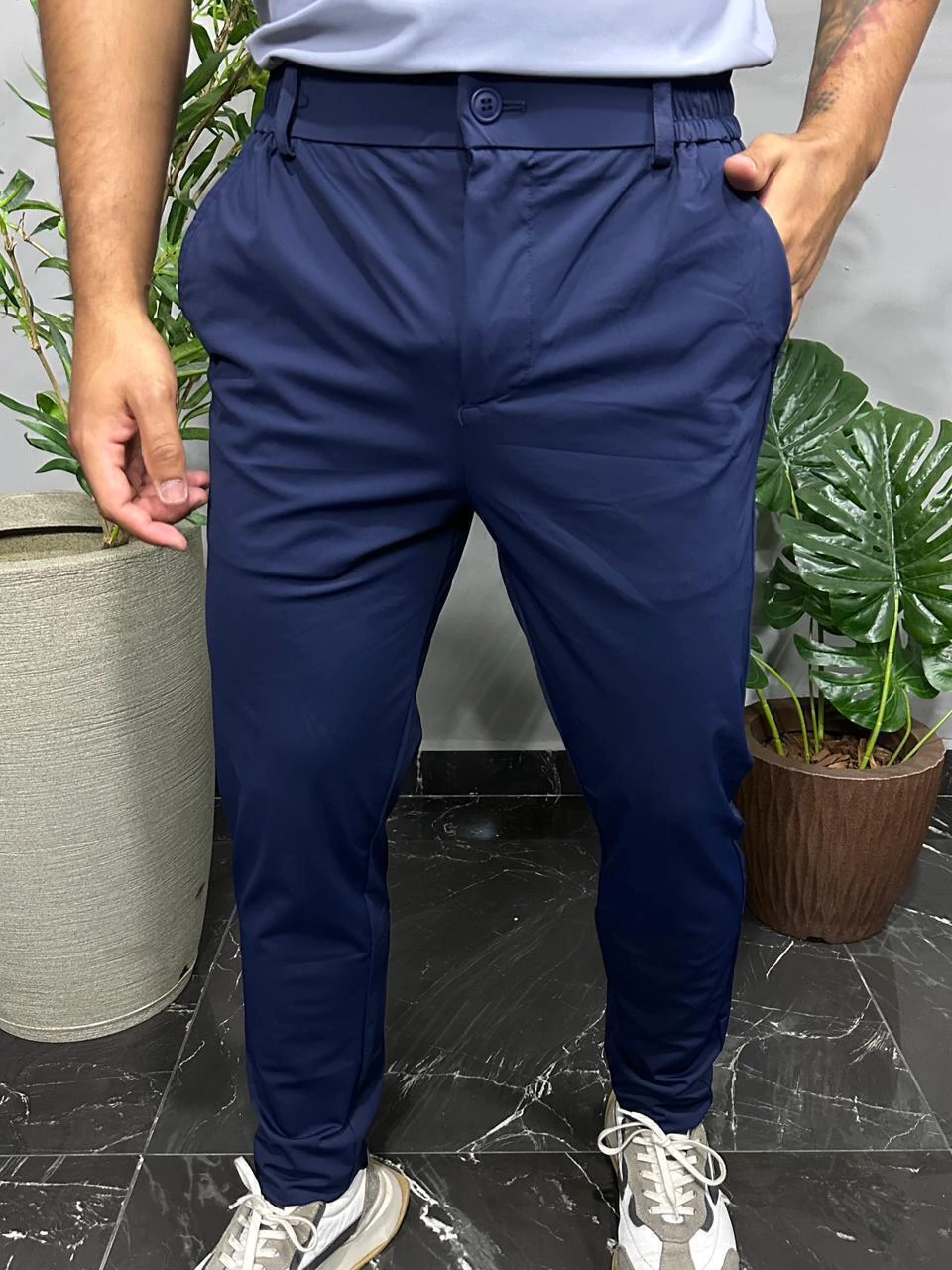 A Calça Masculina de Poliamida com Corte Alfaiataria une o melhor do conforto esportivo com a elegância clássica. Confeccionada em tecido leve, macio e de secagem rápida, ela proporciona mobilidade sem abrir mão do estilo refinado. Ideal para quem deseja um look versátil que transita do trabalho a momentos casuais, com praticidade e sofisticação.