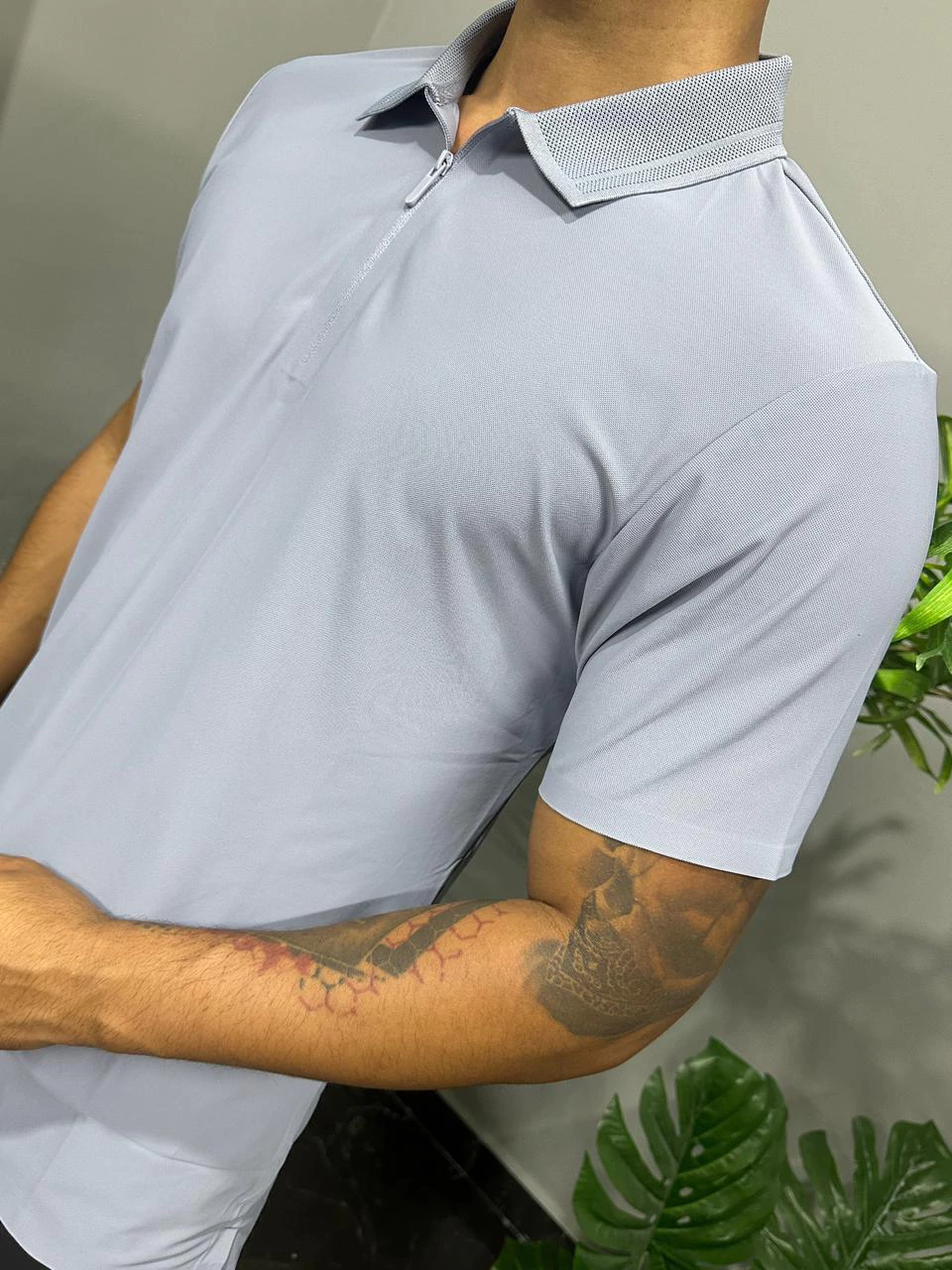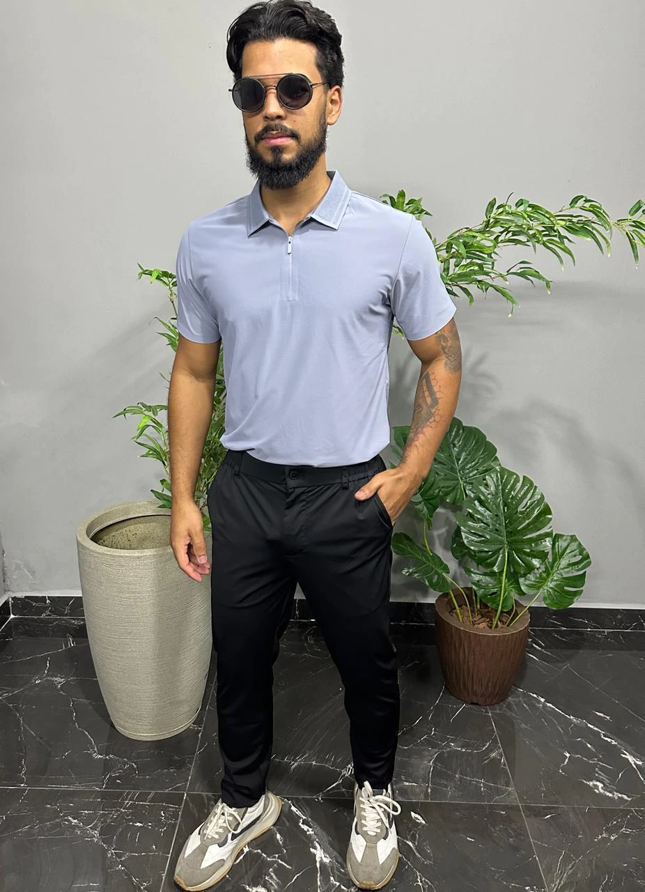 A Camisa Polo Masculina de Poliamida traz um toque moderno e sofisticado ao visual. Confeccionada em tecido leve, macio e de secagem rápida, garante conforto e respirabilidade durante todo o dia. O diferencial está na gola V com zíper, que adiciona estilo e praticidade, deixando a peça ainda mais versátil para ocasiões casuais ou elegantes.